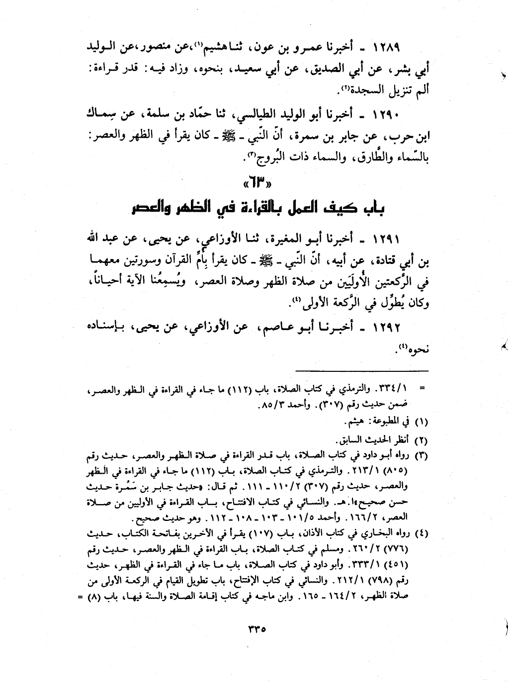 1289 - أخبرنا عمرو بن عون ثنا هشيم عن منصور عن الوليد أبي بشر عن أبي الصديق عن أبي سعيد : بنحوه وزاد فيه قدر قراءة ألم تنزيل السجدة