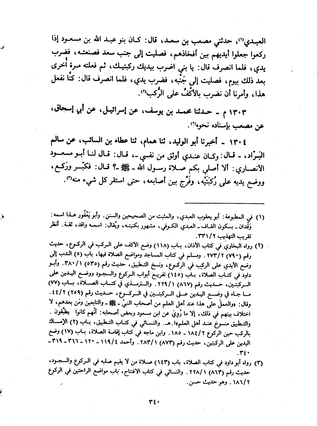 1303 - حدثنا محمد بن يوسف عن إسرائيل عن أبي إسحاق عن مصعب : بإسناده نحوه