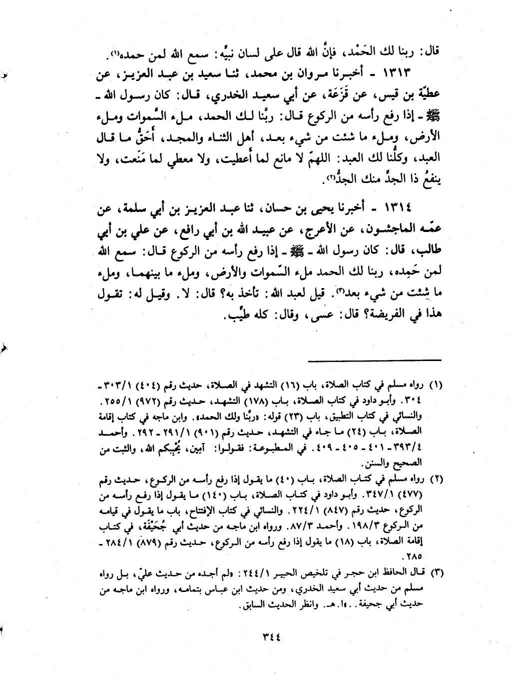 1313 - أخبرنا مروان بن محمد ثنا سعيد بن عبد العزيز عن عطية بن قيس عن قزعة عن أبي سعيد الخدري قال : كان رسول الله صلى الله عليه و سلم إذا رفع رأسه من الركوع قال ربنا لك الحمد ملء السماوات وملء الأرض وملء ما شئت من شيء بعد أهل الثناء والمجد أحق ما قال العبد وكلنا لك العبد اللهم لا مانع لما أعطيت ولا معطي لما منعت ولا ينفع ذا الجد منك الجد