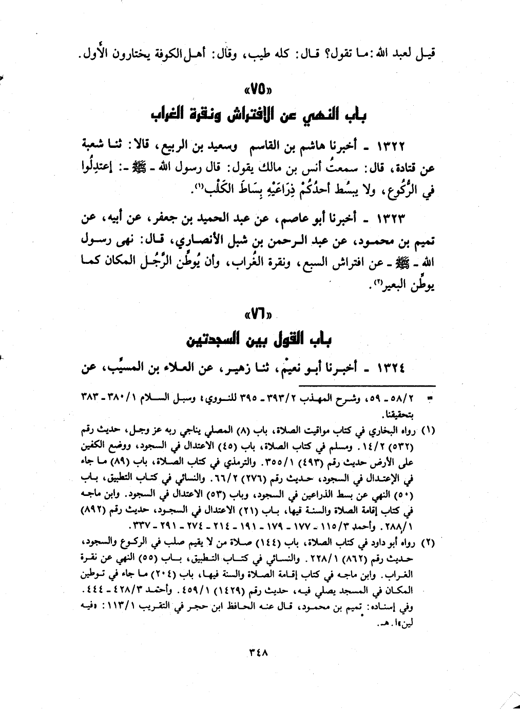 ( 75 باب النهي عن الافتراش ونقرة الغراب )