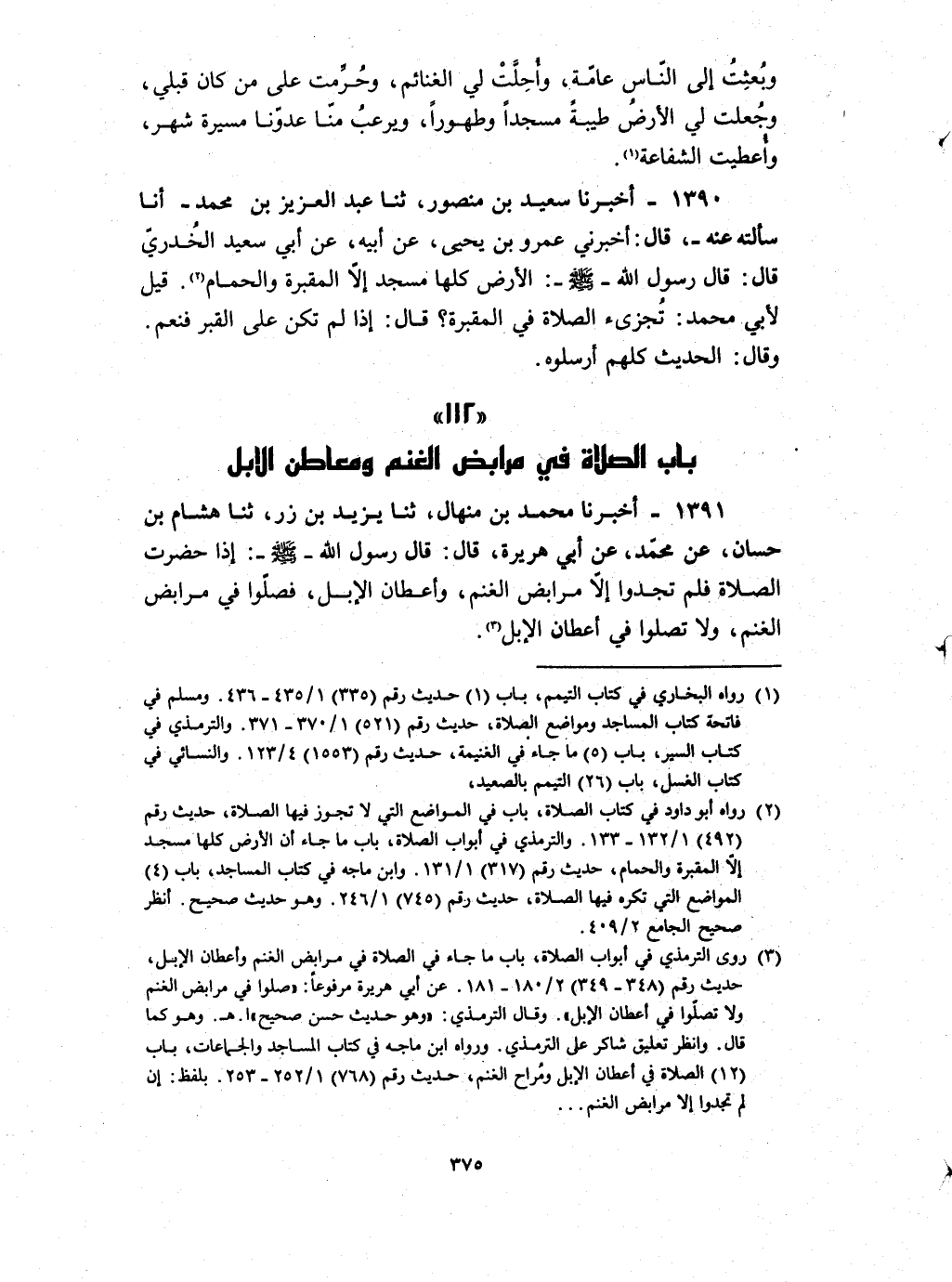 ( 112 باب الصلاة في مرابض الغنم ومعاطن الإبل )