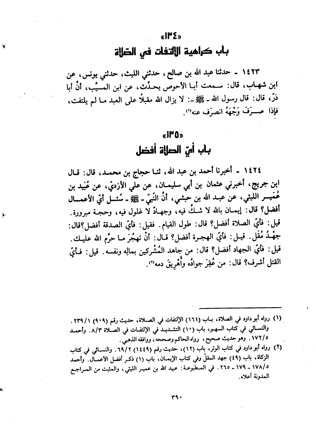 1424 - أخبرنا أحمد بن عبد الله ثنا حجاج بن محمد قال قال بن جريج أخبرني عثمان بن أبي سليمان عن علي الأزدي عن عبيد بن عمير الليثي عن عبد الله بن حبشي : ان النبي صلى الله عليه و سلم سئل أي الأعمال أفضل قال إيمان بالله لا شك فيه وجهاد لا غلول فيه وحجة مبرورة قيل فأي الصلاة أفضل قال طول القيام فقيل فأي الصدقة أفضل قال جهد مقل قيل فأي الهجرة أفضل قال ان تهجر ما حرم الله عليك قيل فأي الجهاد أفضل قال من جاهد المشركين بماله ونفسه قيل فأي القتل أشرف قال من عقر جواده وأهريق دمه
