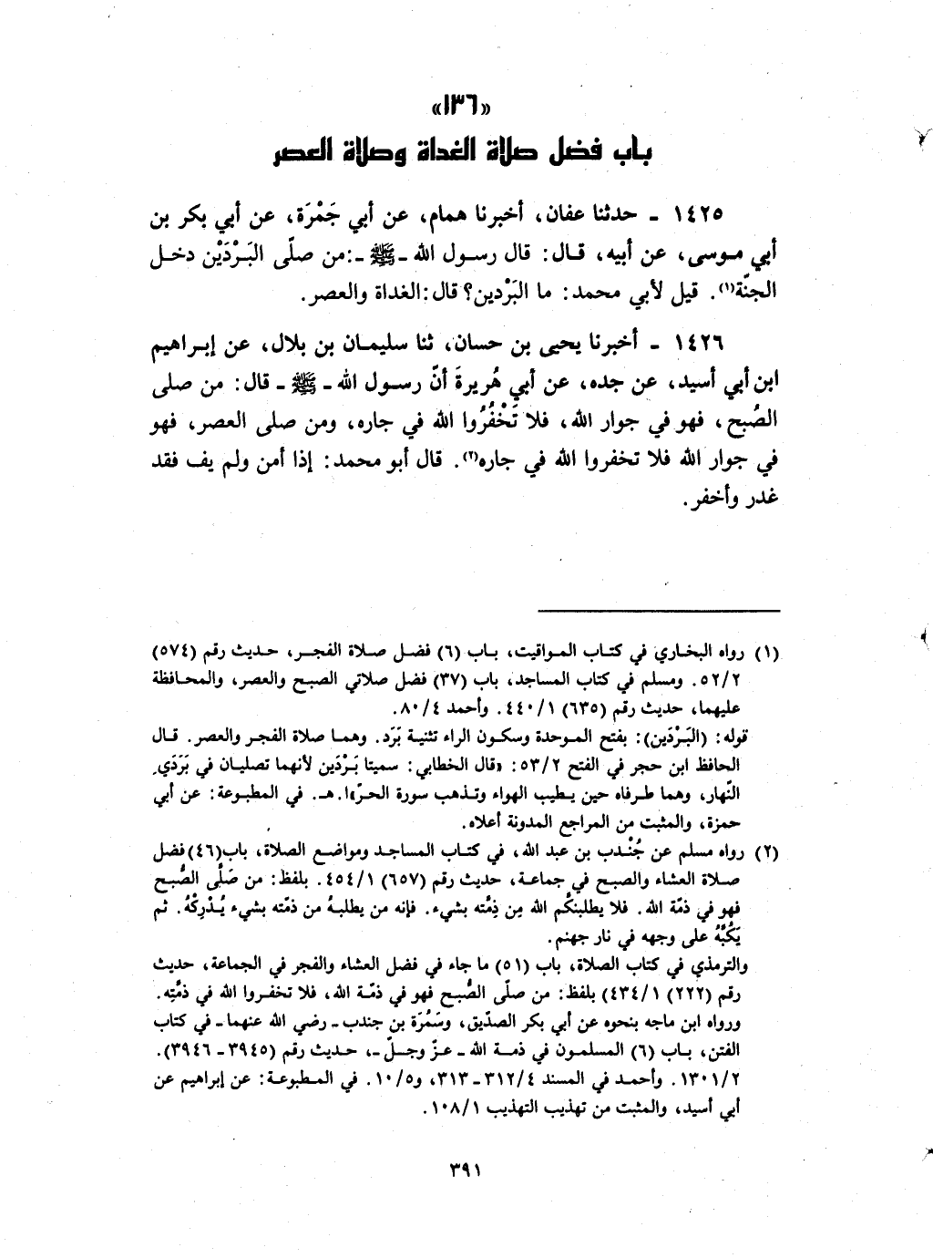 ( 136 باب فضل صلاة الغداة وصلاة العصر )