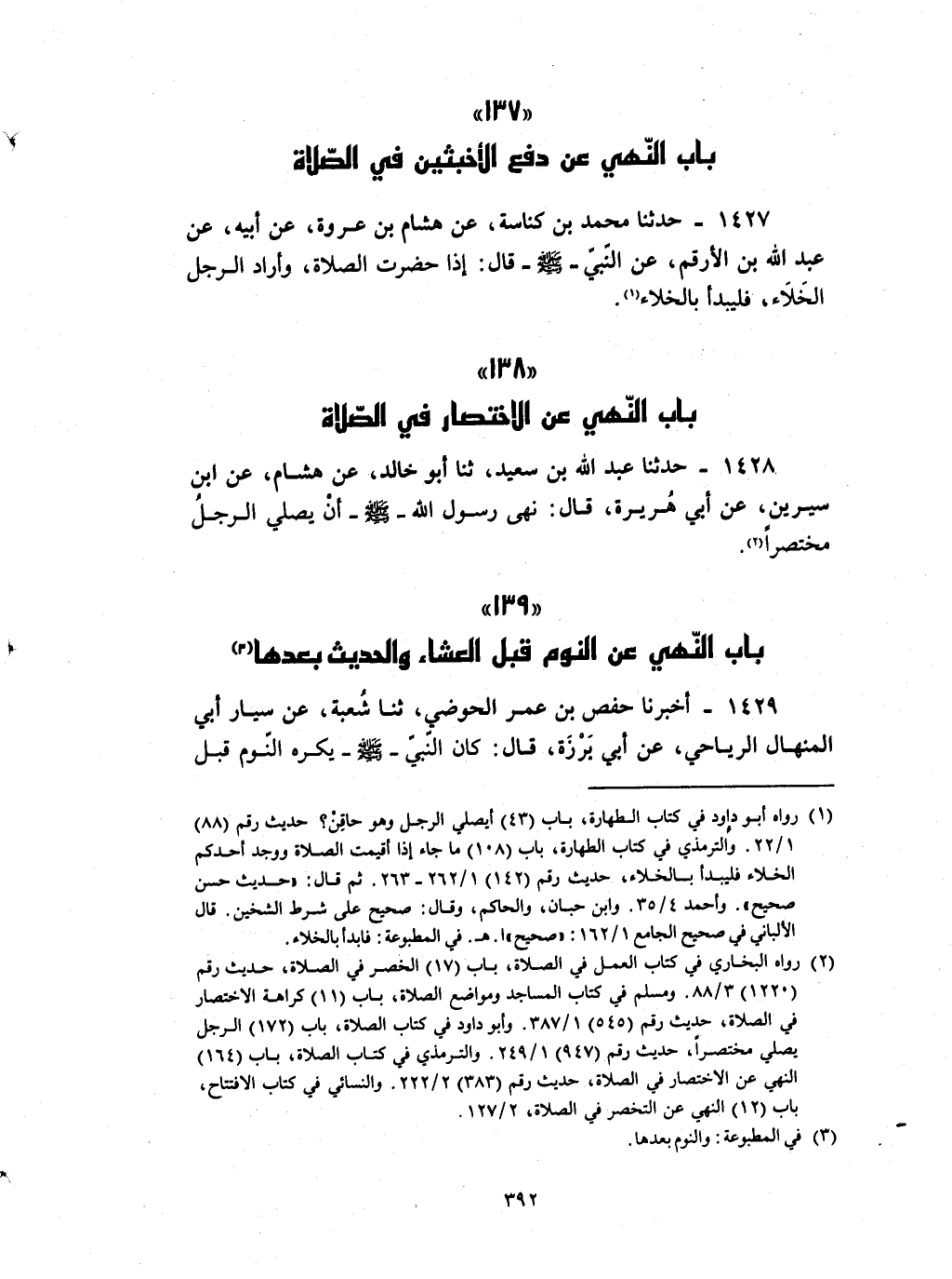 ( 139 باب النهى عن النوم قبل العشاء والحديث بعدها )