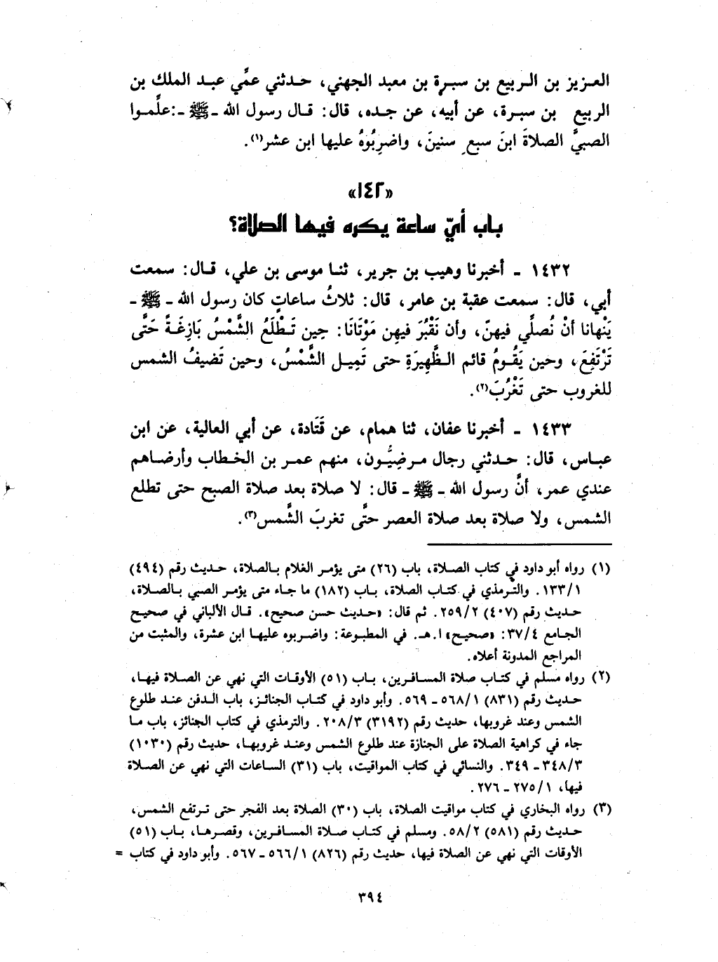 ( 142 باب أي ساعة يكره فيها الصلاة )