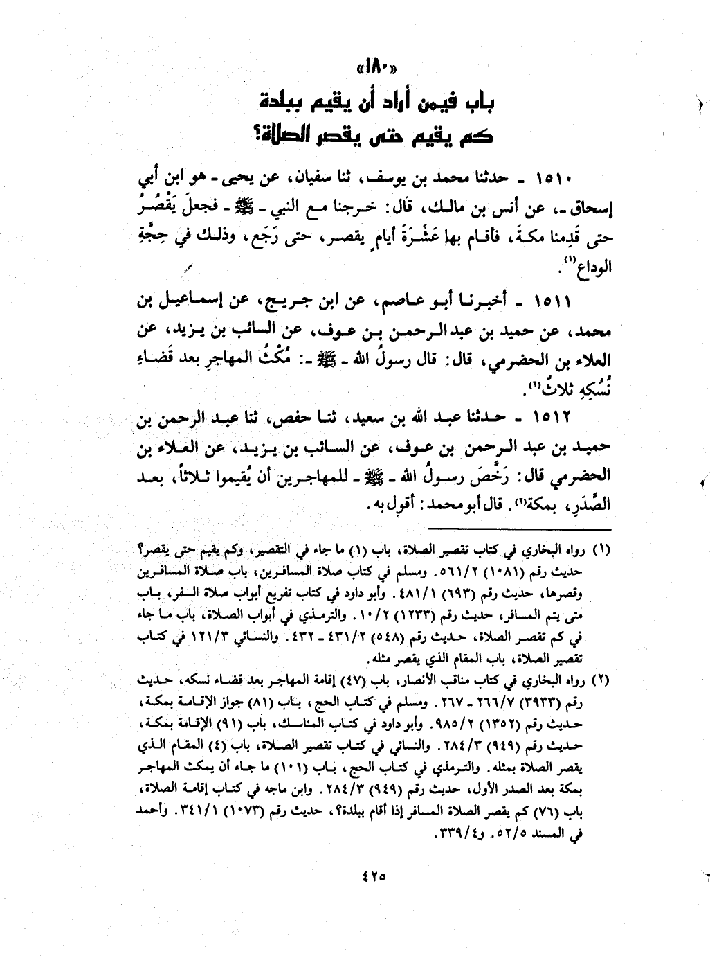 ( 180 باب فيمن أراد ان يقيم ببلدة كم يقيم حتى يقصر الصلاة )