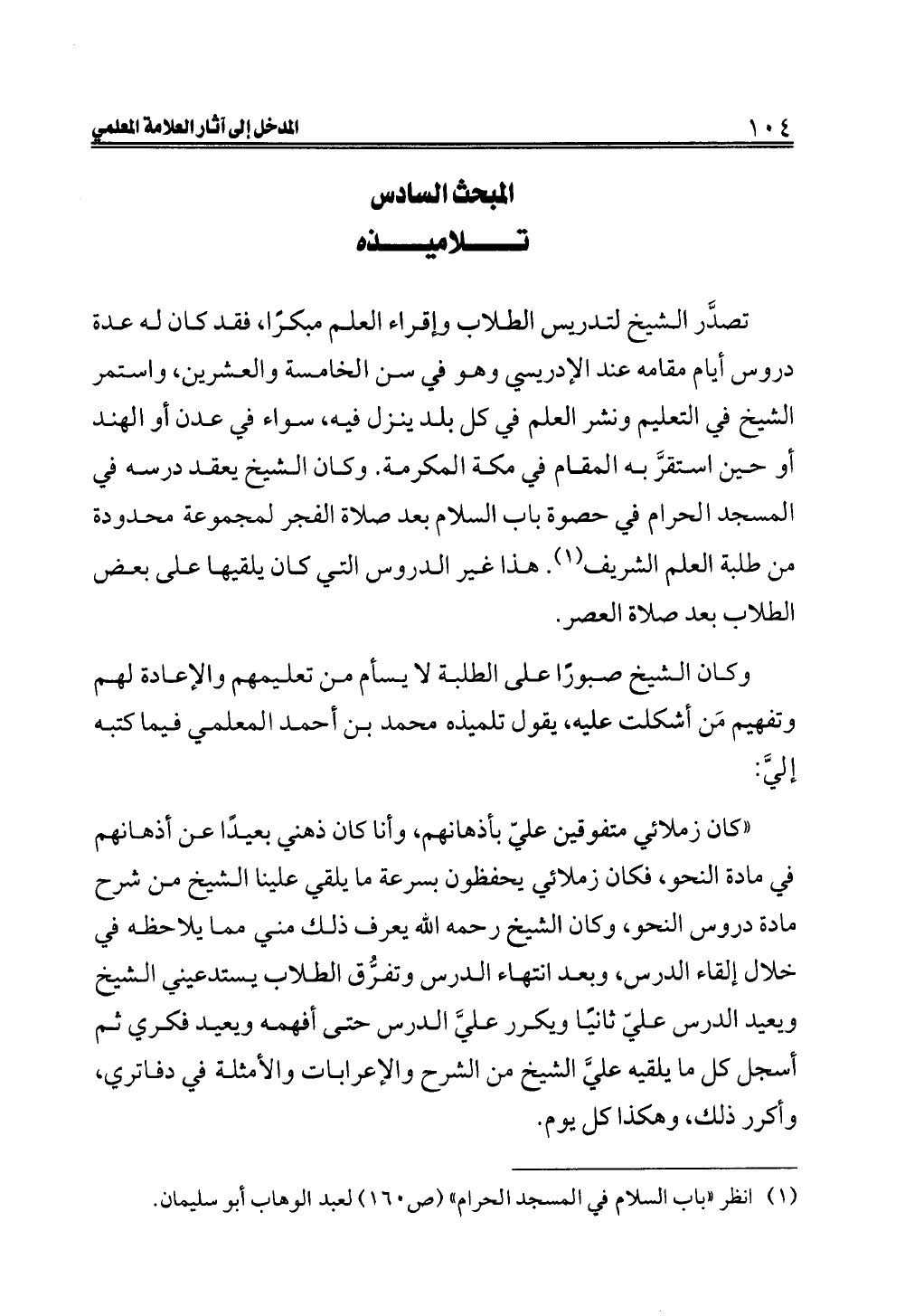 (¬١) انظر "باب السلام في المسجد الحرام" (ص ١٦٠) لعبد الوهاب أبو سليمان.