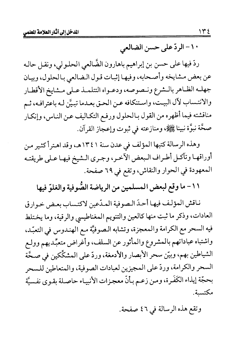 ناقش المؤلف فيها أحدَ الصوفية المدّعين لاكتساب بعض خوارق العادات، وذكر ما ثبت منها كالعين والتنويم المغناطيسي والرقية، وما يختلط فيه السحر مع الكرامة والمعجزة، وتشابه الصوفيَّة مع الهندوس في التعبّد، واشتباه عباداتهم بالمشروع والمأثور عن السلف، وأغراض متعبِّديهم وولع الشياطين بهم، وبيّن سحر الأبصار والأدمغة، وردّ على المشكِّكين في صحَّة السحر والكرامة، وردّ على المجيزين لعبادات الصوفية، والمتعاطين للسحر بحجّة إيذاء الكَفَرة، ومن زعم بأنّ معجزات الأنبياء حاصلة بقوى نفسيَّة مكتسبة.
