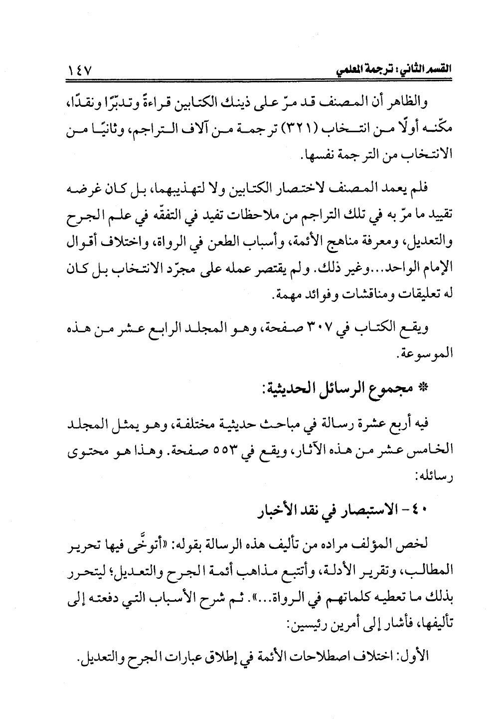 ٤٠ - الاستبصار في نقد الأخبار