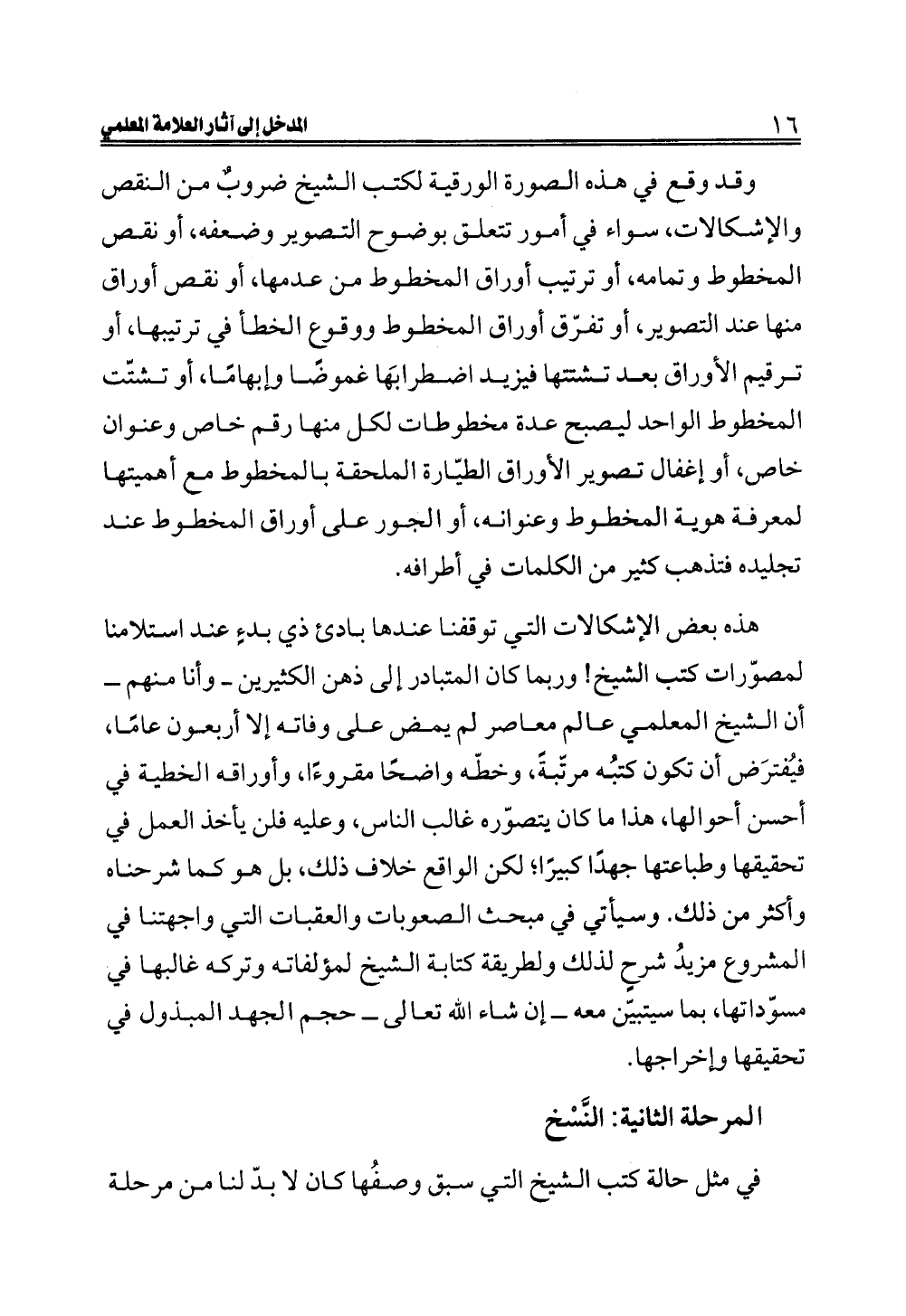 وقد وقع في هذه الصورة الورقية لكتب الشيخ ضروبٌ من النقص والإشكالات، سواء في أمور تتعلق بوضوح التصوير وضعفه، أو نقص المخطوط وتمامه، أو ترتيب أوراق المخطوط من عدمها، أو نقص أوراق منها عند التصوير، أو تفرّق أوراق المخطوط ووقوع الخطأ في ترتيبها، أو ترقيم الأوراق بعد تشتتها فيزيد اضطرابَها غموضًا وإبهامًا، أو تشتّت المخطوط الواحد ليصبح عدة مخطوطات لكل منها رقم خاص وعنوان خاص، أو إغفال تصوير الأوراق الطيّارة الملحقة بالمخطوط مع أهميتها لمعرفة هوية المخطوط وعنوانه، أو الجور على أوراق المخطوط عند تجليده فتذهب كثير من الكلمات في أطرافه.