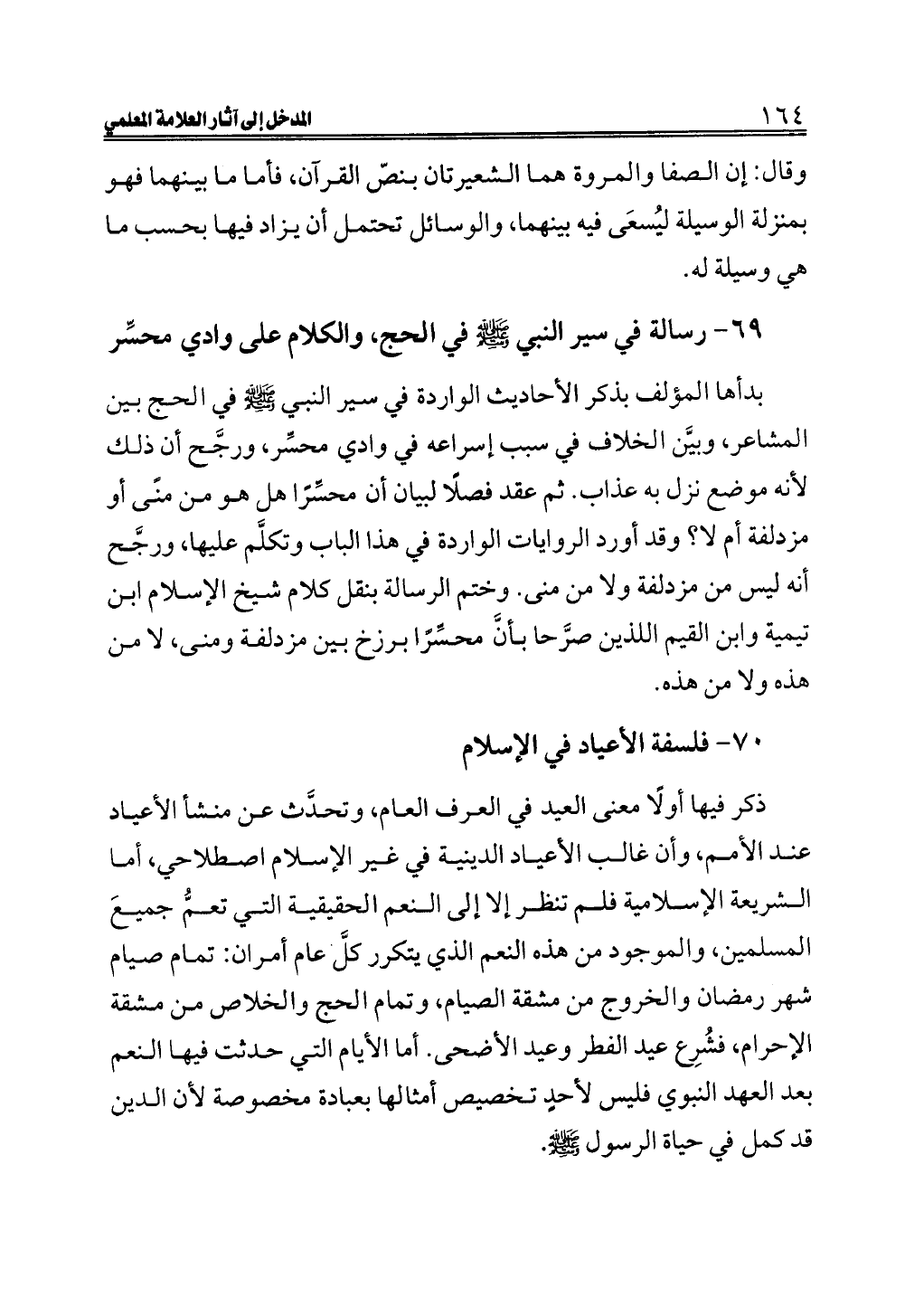 ٦٩ - رسالة في سير النبي - صلى الله عليه وسلم - في الحج، والكلام على وادي محسِّر