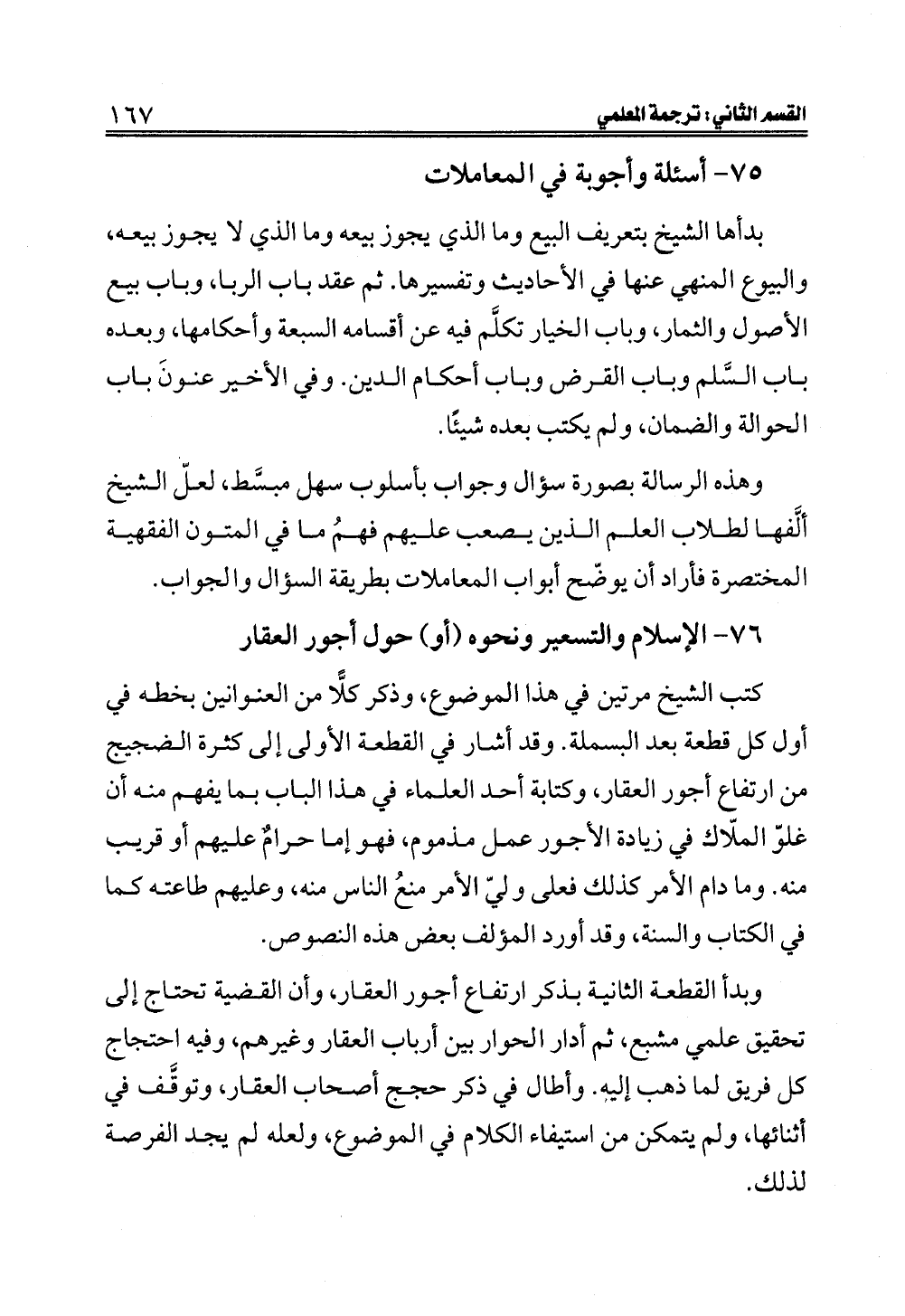 وهذه الرسالة بصورة سؤال وجواب بأسلوب سهل مبسَّط، لعلّ الشيخ ألَّفها لطلاب العلم الذين يصعب عليهم فهمُ ما في المتون الفقهية المختصرة فأراد أن يوضّح أبواب المعاملات بطريقة السؤال والجواب.