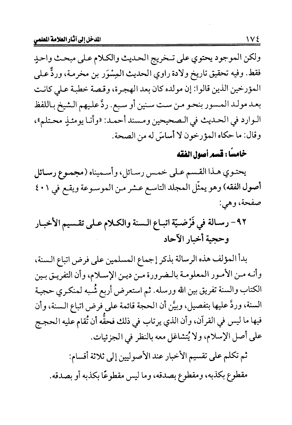 ٩٢ - رسالة في فَرْضيّة اتباع السنة والكلام على تقسيم الأخبار وحجية أخبار الآحاد
