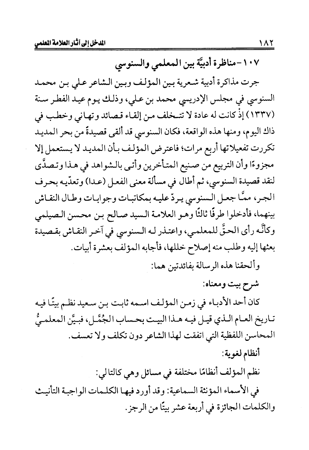 ١٠٧ - مناظرة أدبيَّة بين المعلمي والسنوسي