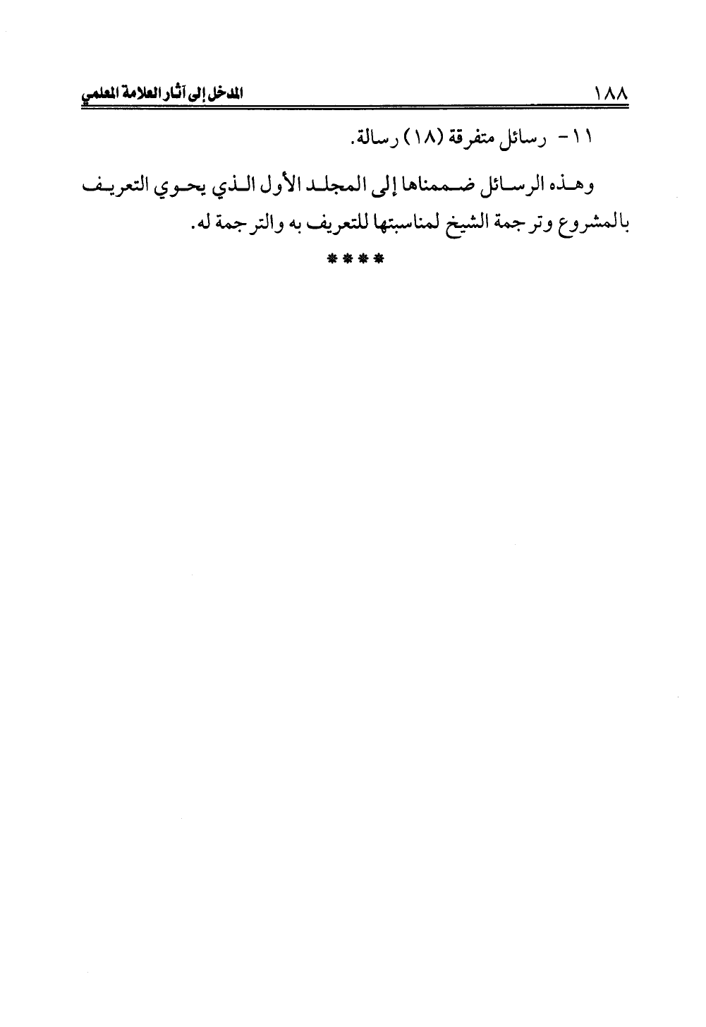 وهذه الرسائل ضممناها إلى المجلد الأول الذي يحوي التعريف بالمشروع وترجمة الشيخ لمناسبتها للتعريف به والترجمة له.
