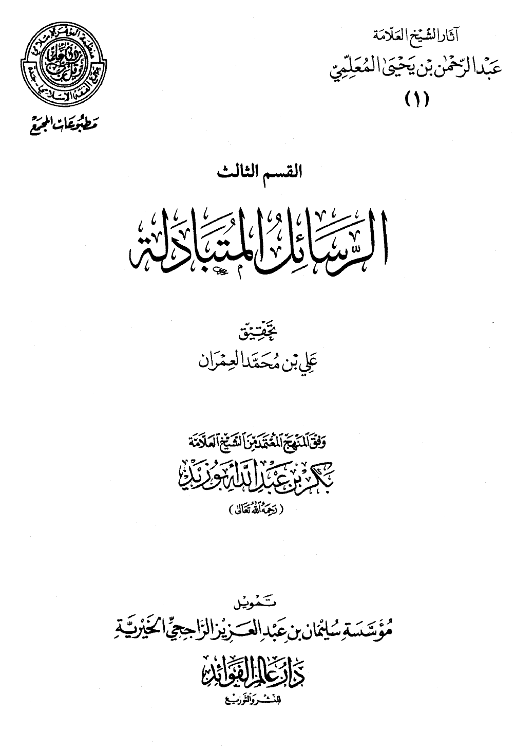 كتاب آثار عبد الرحمن بن يحيى المعلمي اليماني (اسم الجزء: 1)