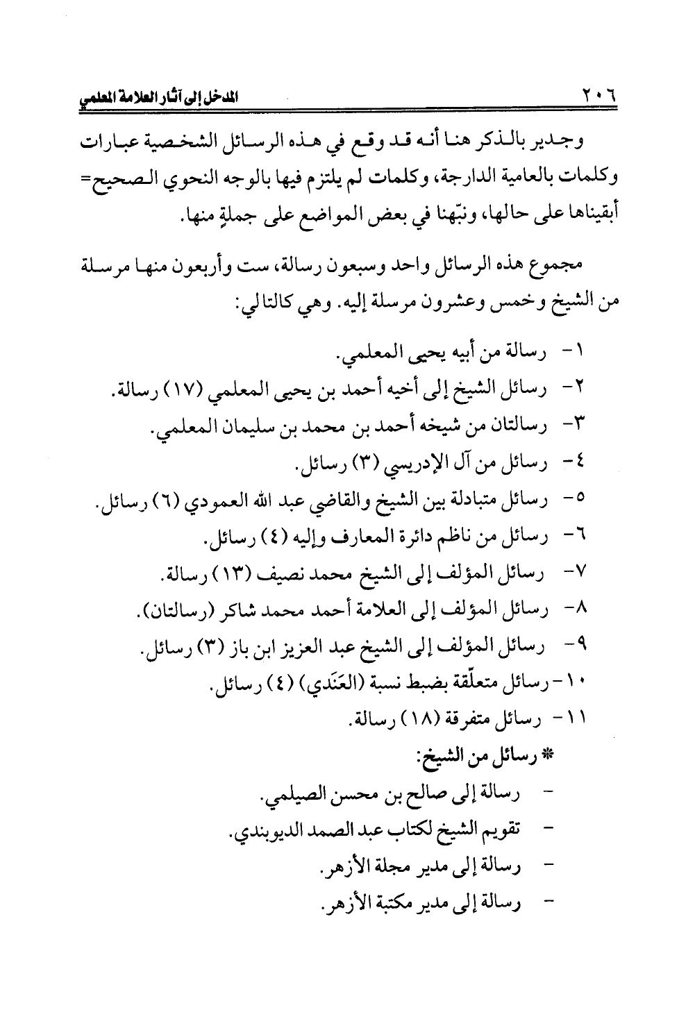 ٢ - رسائل الشيخ إلى أخيه أحمد بن يحيى المعلمي (١٧) رسالة.