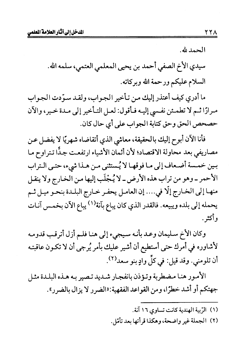 سيدي الأخ الصفي أحمد بن يحيى المعلمي العتمي، سلمه الله.