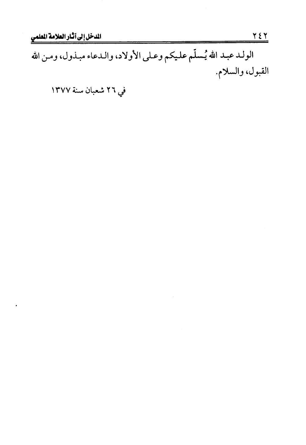 في ٢٦ شعبان سنة ١٣٧٧