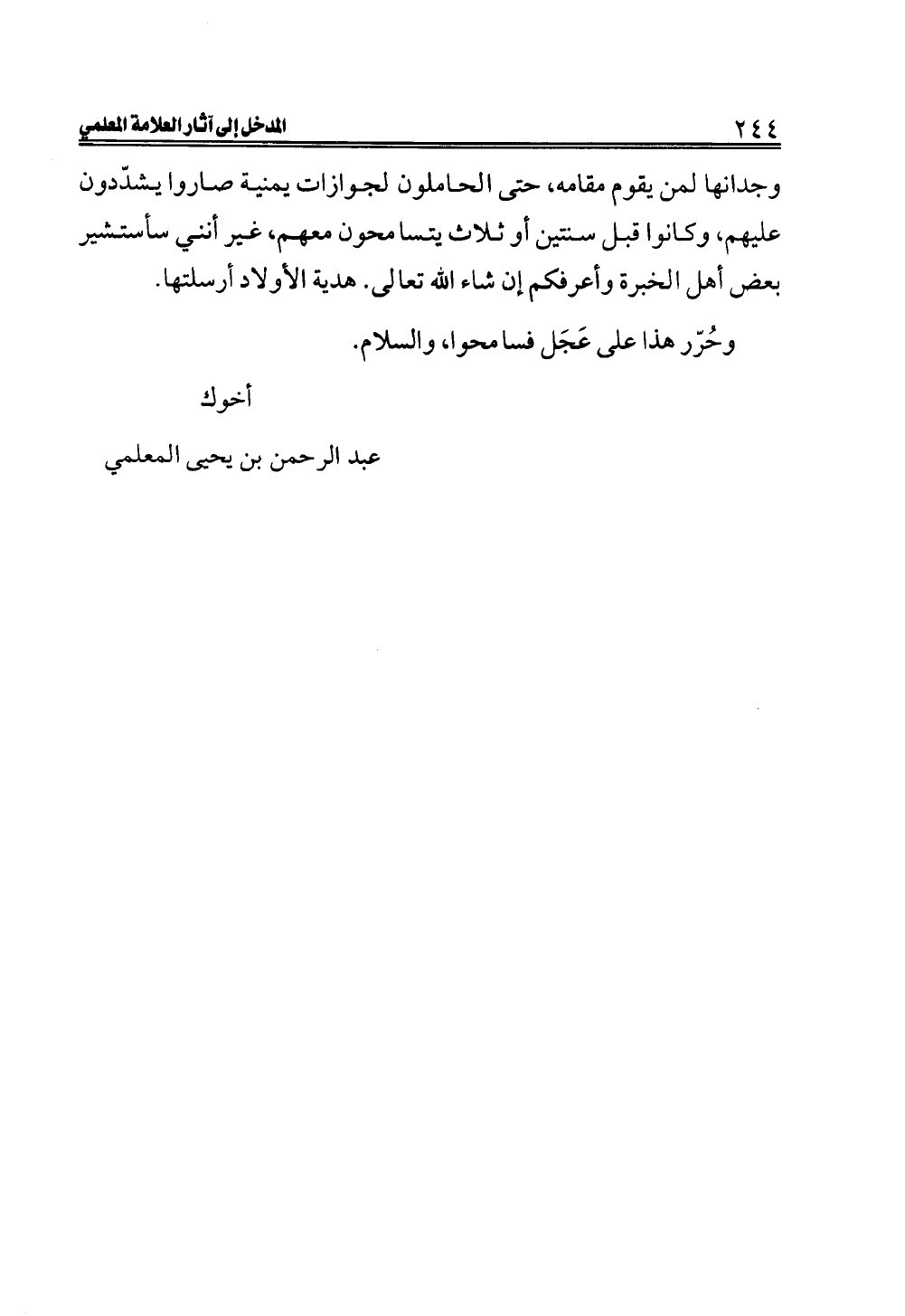 وجدانها لمن يقوم مقامه، حتى الحاملون لجوازات يمنية صاروا يشدّدون عليهم، وكانوا قبل سنتين أو ثلاث يتسامحون معهم، غير أنني سأستشير بعض أهل الخبرة وأعرفكم إن شاء الله تعالى. هدية الأولاد أرسلتها.