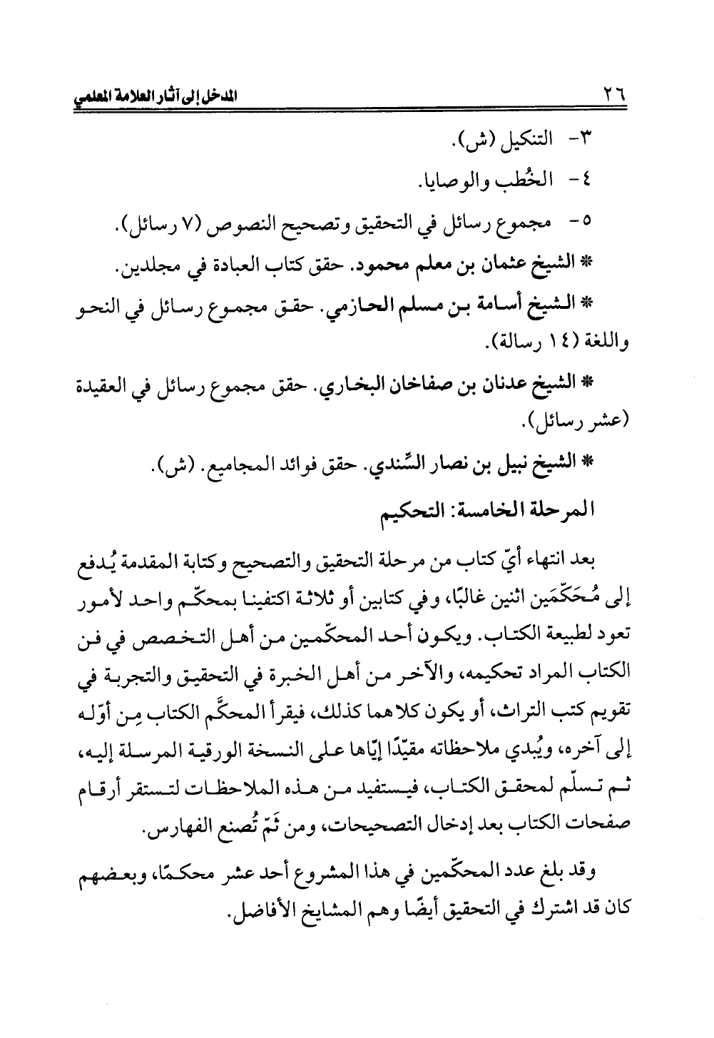 وقد بلغ عدد المحكّمين في هذا المشروع أحد عشر محكمًا، وبعضهم كان قد اشترك في التحقيق أيضًا وهم المشايخ الأفاضل.