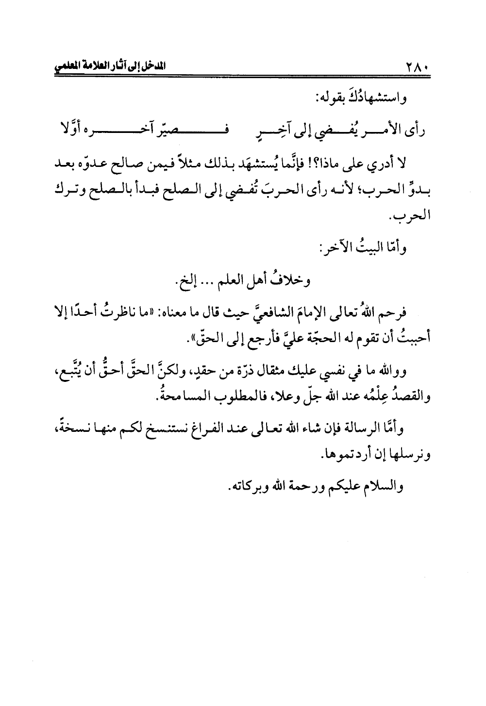فرحم اللهُ تعالى الإمامَ الشافعيَّ حيث قال ما معناه: "ما ناظرتُ أحدًا إلا أحببتُ أن تقوم له الحجّة عليَّ فأرجع إلى الحقّ".