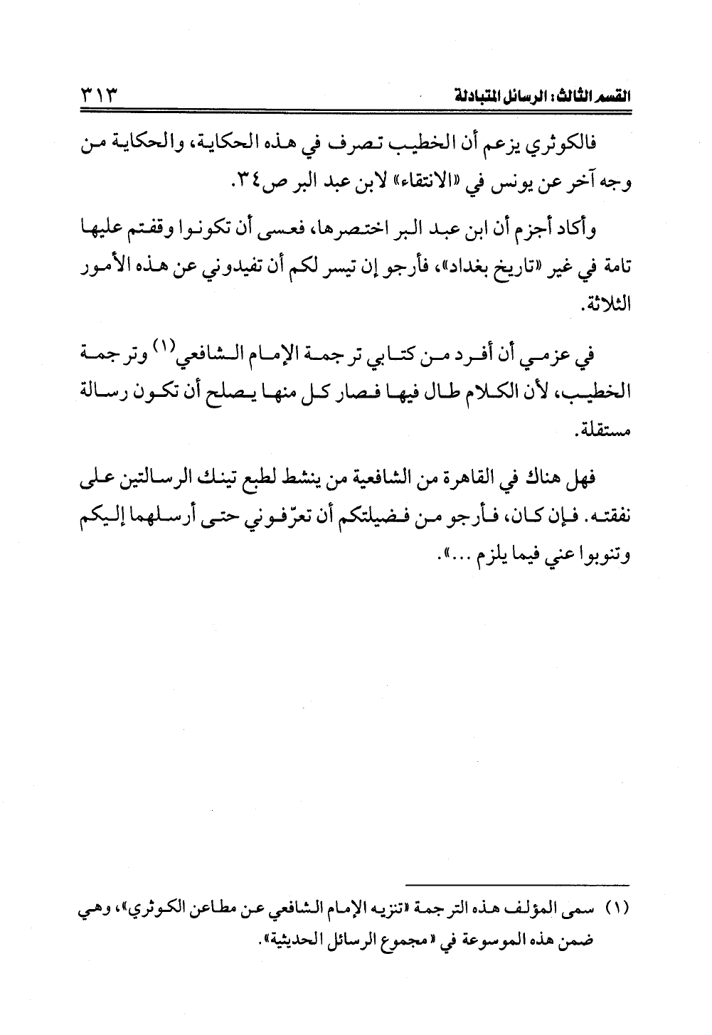 (¬١) سمى المؤلف هذه الترجمة "تنزيه الإمام الشافعي عن مطاعن الكوثري"، وهي ضمن هذه الموسوعة في "مجموع الرسائل الحديثية".