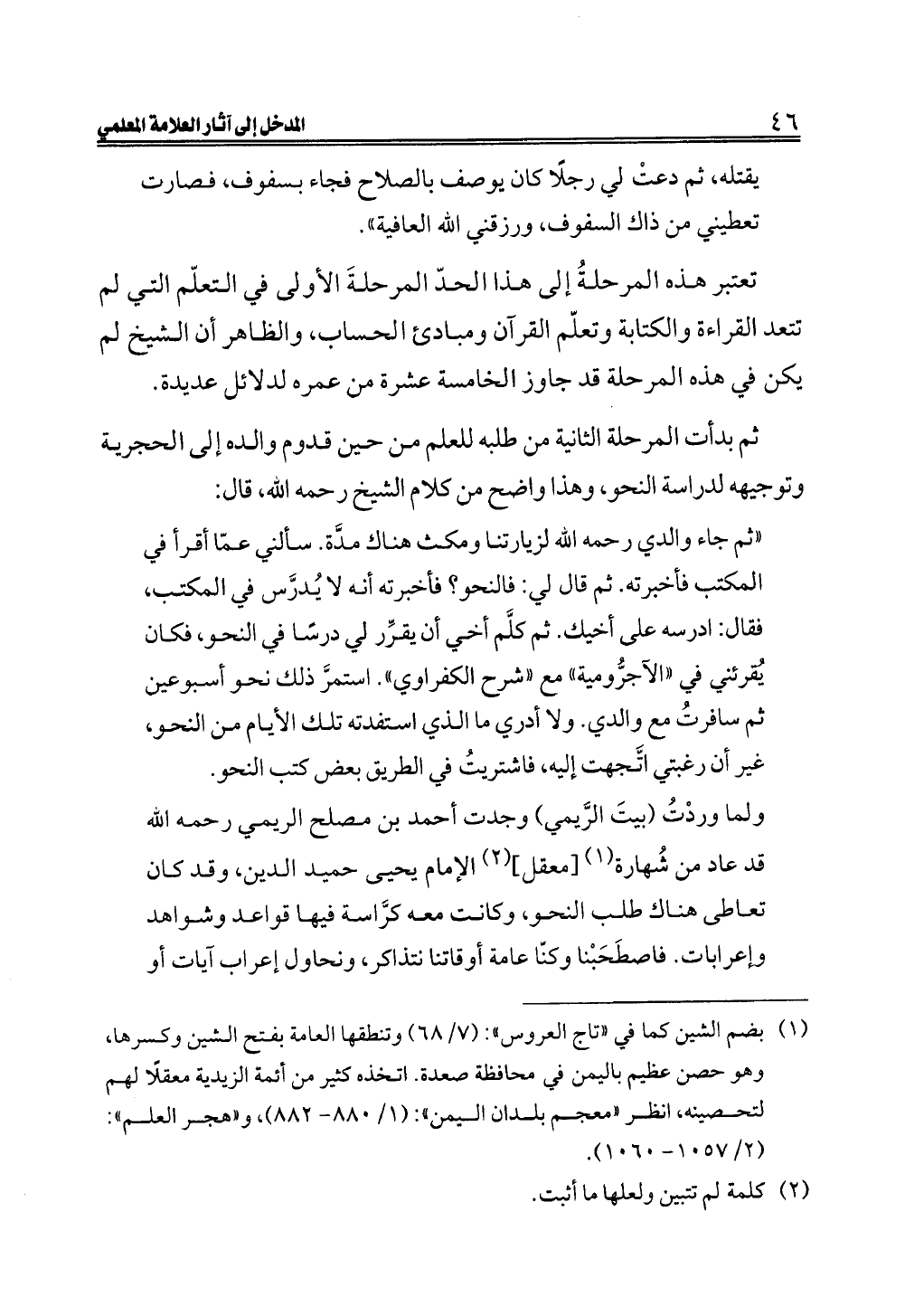 ثم بدأت المرحلة الثانية من طلبه للعلم من حين قدوم والده إلى الحجرية وتوجيهه لدراسة النحو، وهذا واضح من كلام الشيخ رحمه الله، قال:
