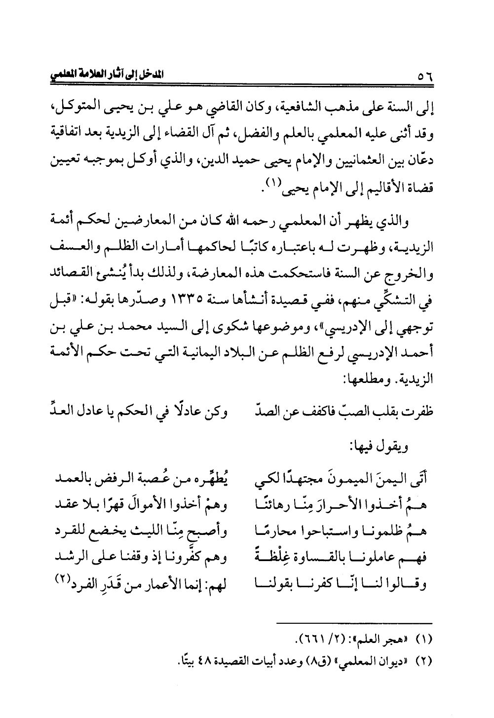 (¬٢) "ديوان المعلمي" (ق ٨) وعدد أبيات القصيدة ٤٨ بيتًا.