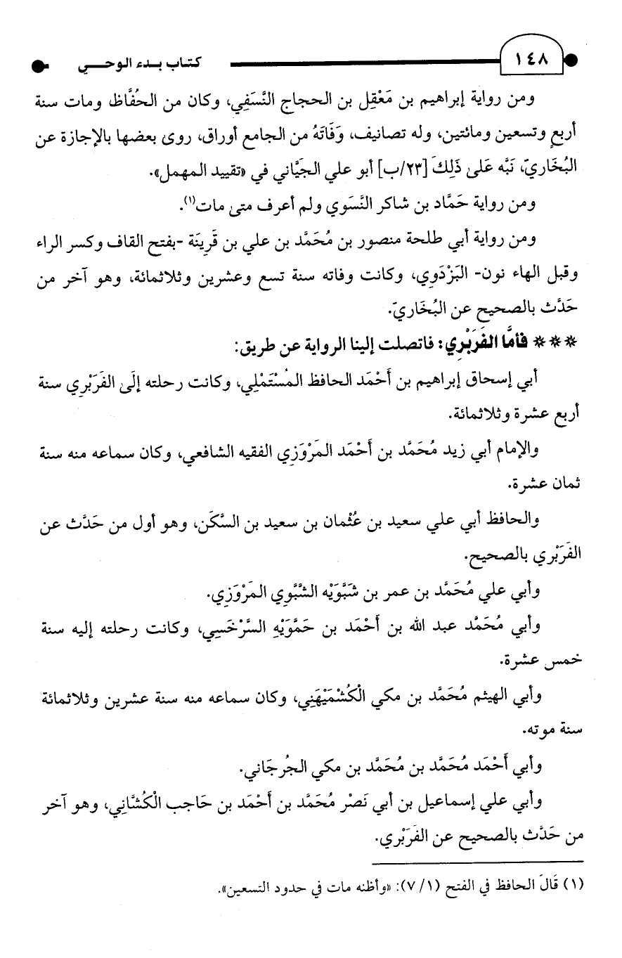 * * * فأمَّا الفرَبْري: فاتصلت إلينا الرواية عن طريق: