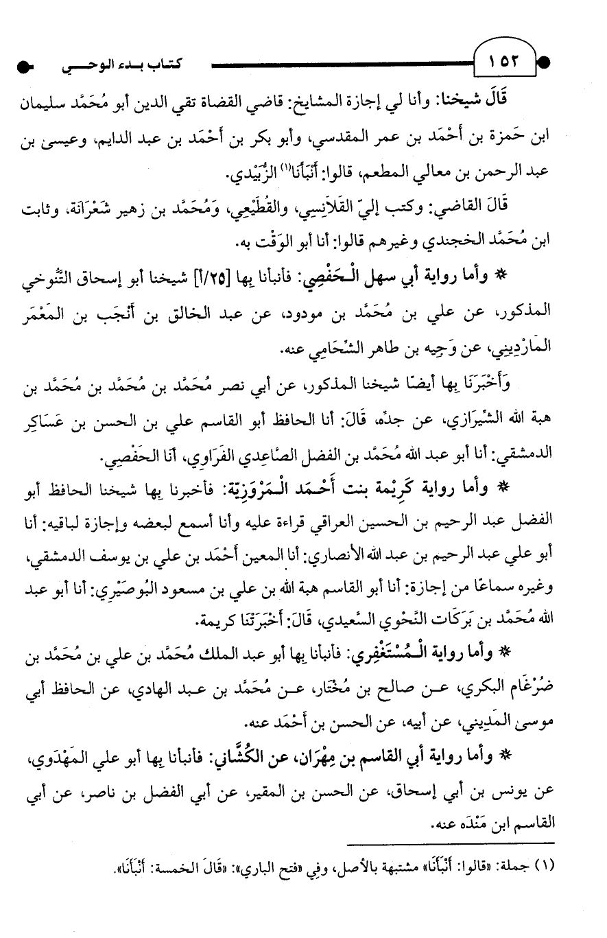 (¬1) جملة: "قالو ا: أنْبَأَنَا" مشتبهة بالأصل، وفِي "فتح الباري": "قَالَ الخمسة: أَنْبَأَنَا".