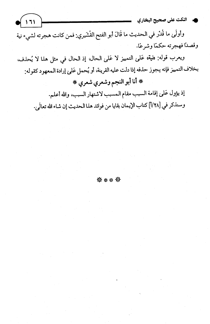 وسنذكر في [28/ أ] كتاب الإيمان بقايا من فوائد هذا الحديث إن شاء الله تعالَى.