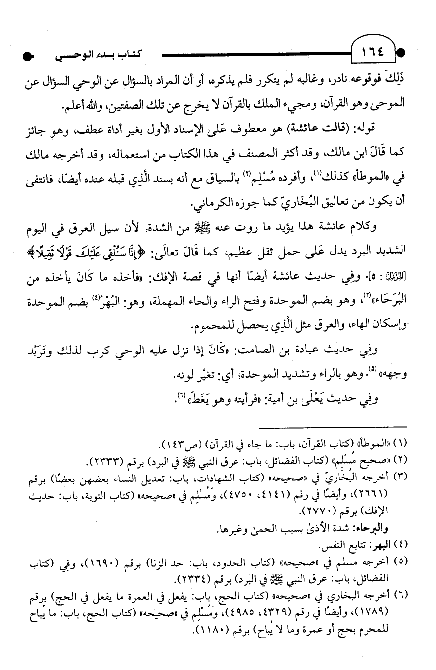 وكلام عائشة هذا يؤيد ما روت عنه - صلى الله عليه وسلم - من الشدة؛ لأن سيل العرق في اليوم الشديد البرد يدل عَلى حمل ثقل عظيم، كما قَالَ تعالَى: {إِنَّا سَنُلْقِي عَلَيْكَ قَوْلًا ثَقِيلًا} [المزمل: 5]. وفي حديث عائشة أيضًا أنها في قصة الإفك: "فأخذه ما كَانَ يأخذه من البُرَحَاء" (¬3)، وهو بضم الموحدة وفتح الراء والحاء المهملة، وهو: البُهْرُ (¬4) بضم الموحدة وإسكان الهاء، والعرق مثل الَّذِي يحصل للمحموم.