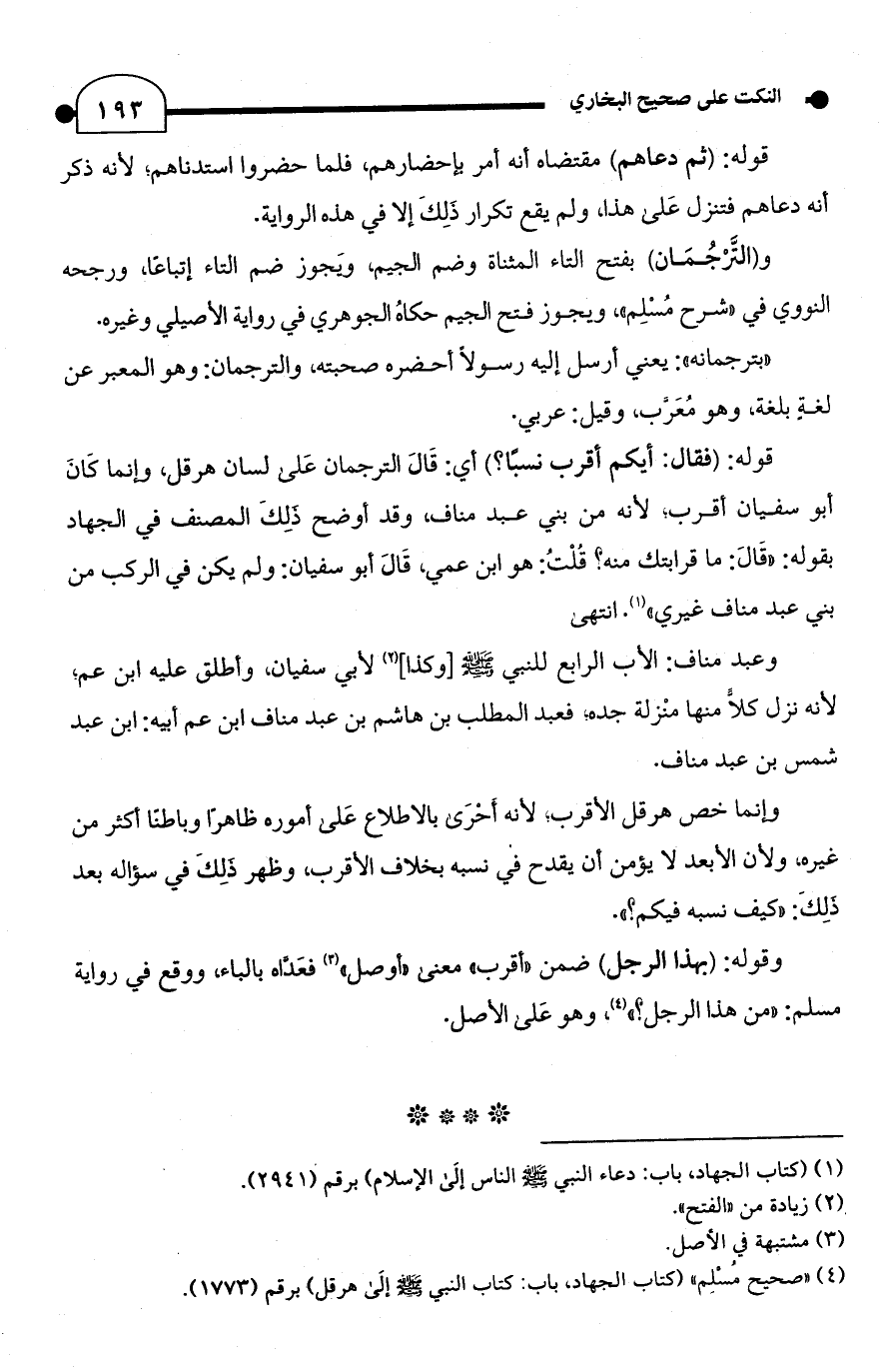 (¬4) "صحيح مُسْلِم" (كتاب الجهاد، باب: كتاب النبي - صلى الله عليه وسلم - إلَى هرقل) برقم (1773).