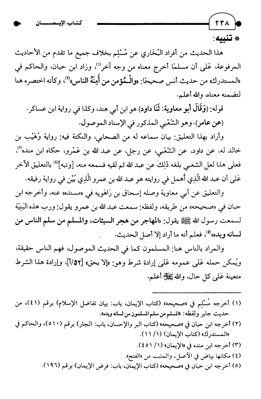 (¬5) أخرجه ابن حبان في "صحيحه" (كتاب الإيمان، باب: فرض الإيمان) برقم (196).