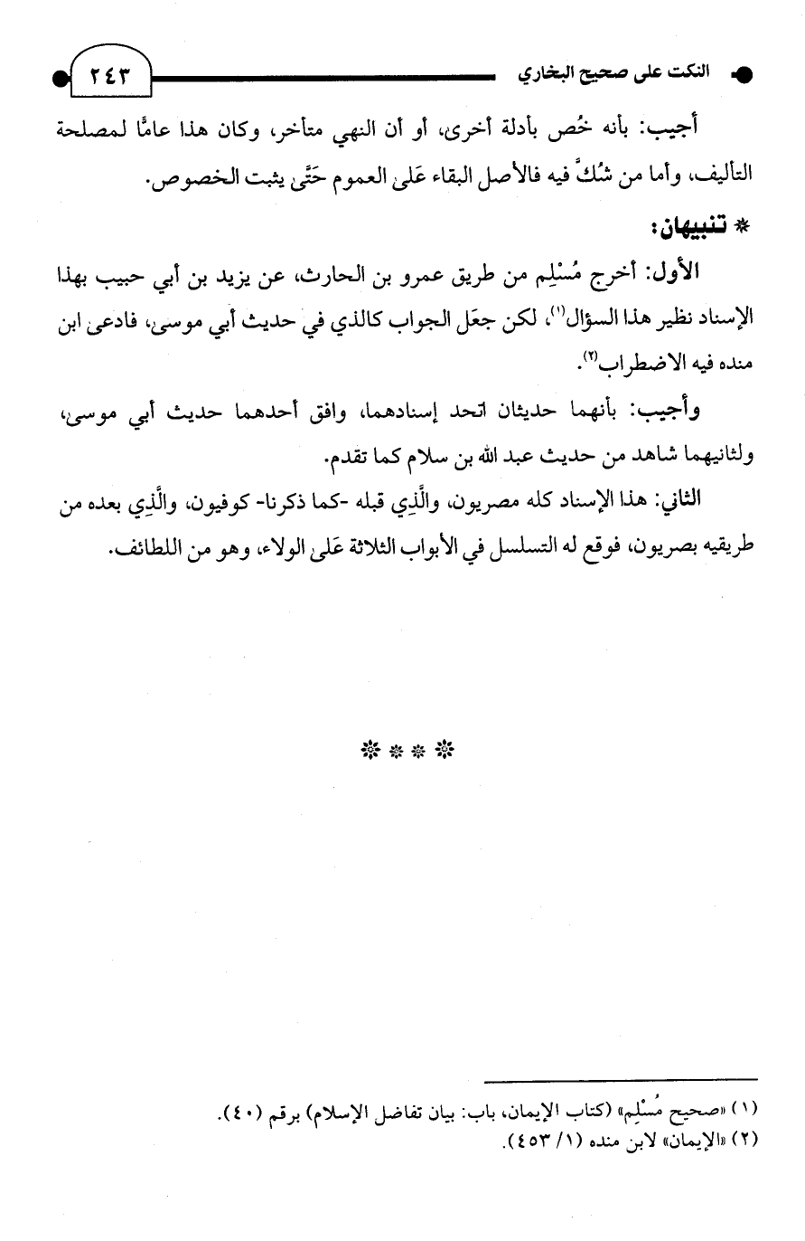 الأول: أخرج مُسْلِم من طريق عمرو بن الحارث، عن يزيد بن أبي حبيب بهذا الإسناد نظير هذا السؤال (¬1)، لكن جعَل الجواب كالذي في حديث أبي موسى، فادعى ابن منده فيه الاضطراب (¬2).