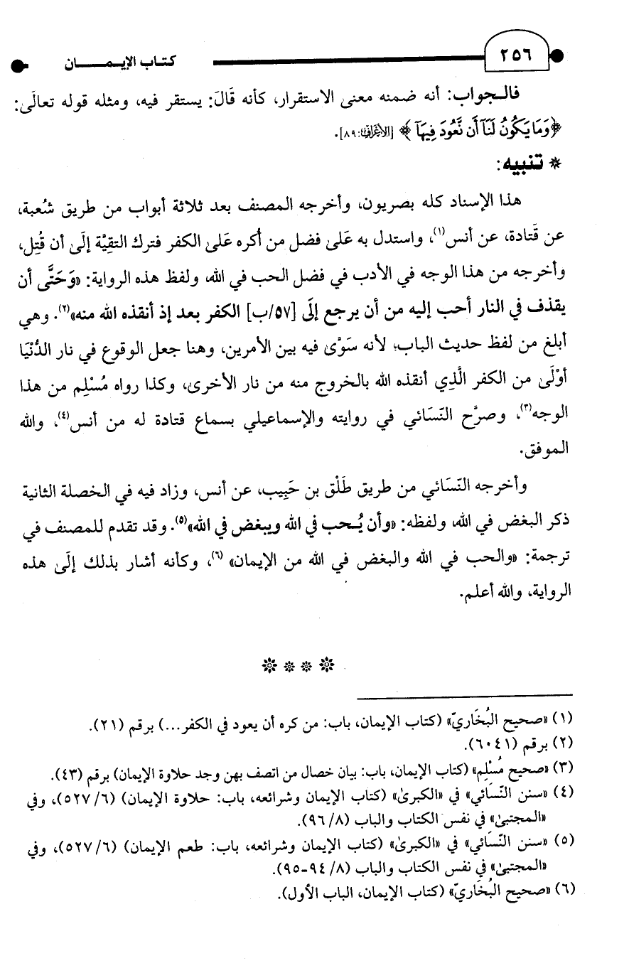 (¬4) "سنن النَسَائي" في "الكبرى" (كتاب الإيمان وشرائعه، باب: حلاوة الإيمان) (6/ 527)، وفي "المجتبى" في نفس الكتاب والباب (8/ 96).