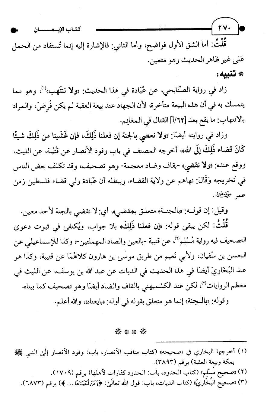 زاد في رواية الصُنَابحي، عن عُبَادة في هذا الحديث: "ولا ننتَهب" (¬1)، وهو مما يتمسك به في أن هذه البيعة متأخرة؛ لأن الجهاد عند بيعة العقبة لم يكن فُرِضَ، والمراد بالانتهاب: ما يقع بعد [62/أ] القتال في المغانِم.