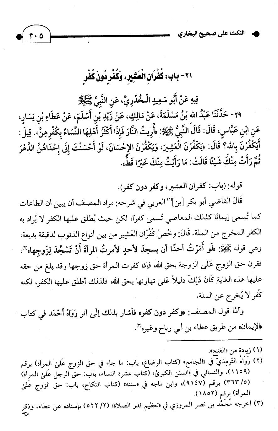 21 - باب: كُفْرَانِ الْعَشِيرِ، وَكُفْرٍ دُونَ كُفْرٍ