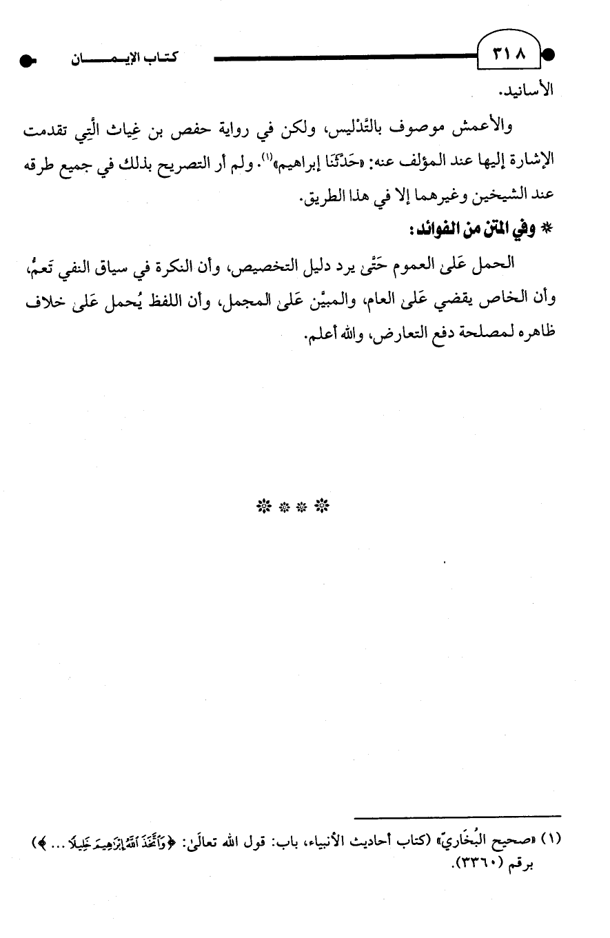 والأعمش موصوف بالتَّدْليس، ولكن في رواية حفص بن غِياث التِي تقدمت الإشارة إليها عند المؤلف عنه: "حَدَّثَنَا إبراهيم" (¬1). ولم أر التصريح بذلك في جميع طرقه عند الشيخين وغيرهما إلا في هذا الطريق.