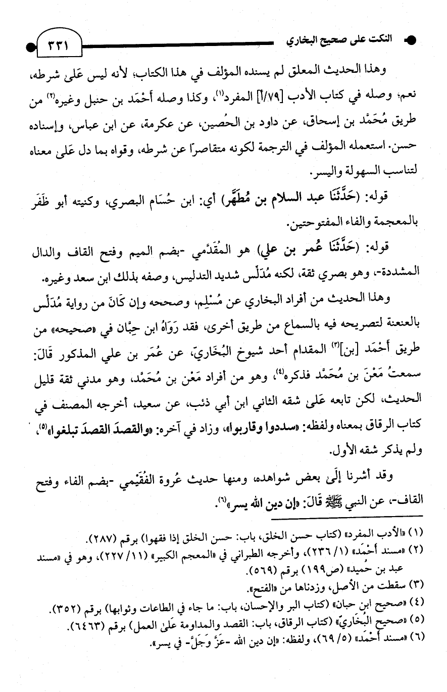 وقد أشرنا إلَى بعض شواهده، ومنها حديث عُروة الفُقَيْمي -بضم الفاء وفتح القاف-، عن النبي - صلى الله عليه وسلم - قَالَ: "إن دين الله يسر" (¬6).