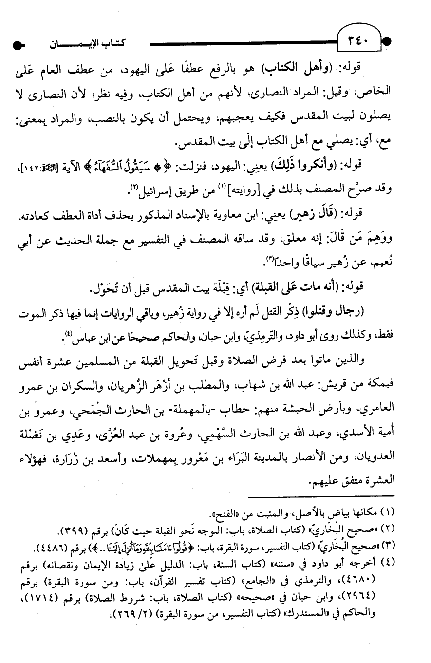 (¬2) "صحيح البُخَاريّ" (كتاب الصلاة، باب: التوجه نَحو القبلة حيث كَانَ) برقم (399).