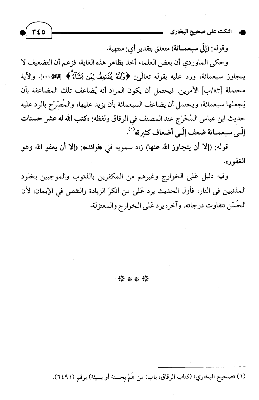 (¬1) "صحيح البخاري" (كتاب الرقاق، باب: من هَمَّ بِحسنة أو بسيئة) برقم (6491).