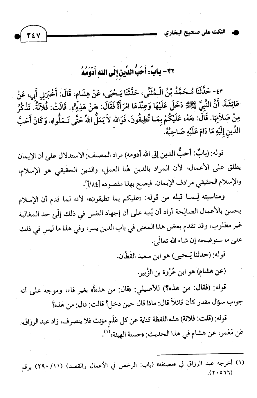 32 - بَابٌ: أَحَبُّ الدِّينِ إِلَى اللَّهِ أَدْوَمُهُ