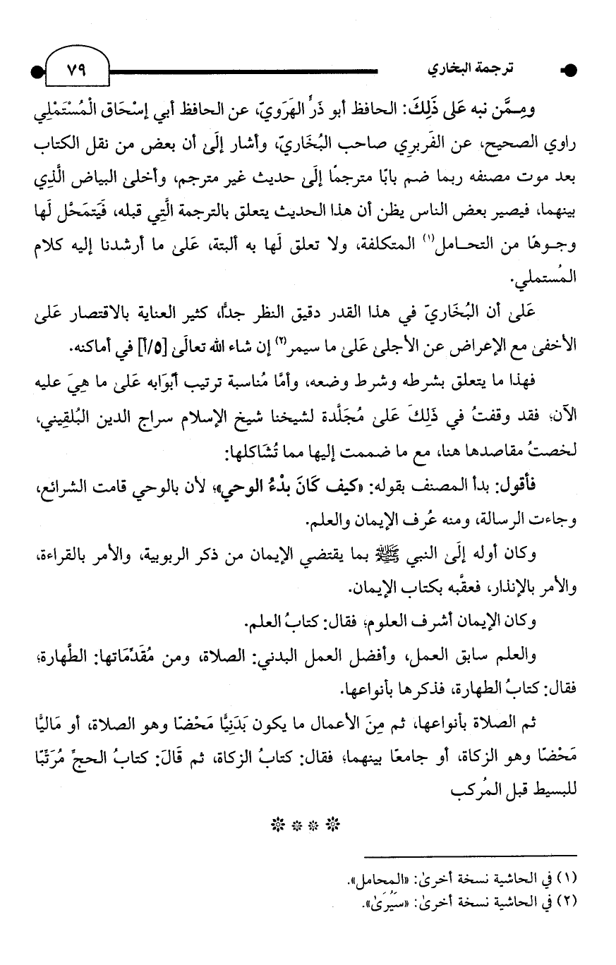 وممَّن نبه عَلى ذَلِكَ: الحافظ أبو ذَرٍّ الهَرَويّ، عن الحافظ أبي إسْحَاق الْمُسْتَمْلِي راوي الصحيح، عن الفَربرِي صاحب البُخَاريّ، وأشار إلَى أن بعض من نقل الكتاب بعد موت مصنفه ربما ضم بابًا مترجمًا إلَى حديث غير مترجم، وأخلى البياض الَّذِي بينهما، فيصير بعض الناس يظن أن هذا الحديث يتعلق بالترجمة الَّتِي قبله، فَيَتمَحّل لَها وجوهًا من التحامل (¬1) المتكلفة، ولا تعلق لَها به ألبتة، عَلى ما أرشدنا إليه كلام المُستملي.