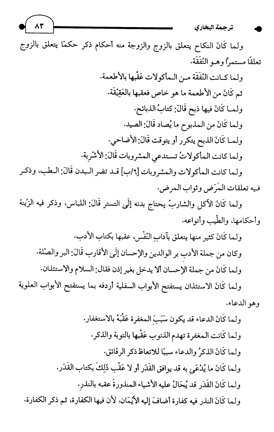 ولما كَانَ كثير منها يتعلق بآدابِ النَّفْس، عقبها بكتاب الأدب.