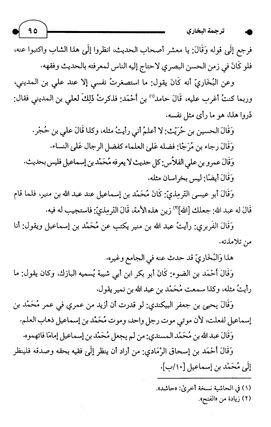 وَقَالَ أَحْمَد بن إسحاق الرَّمَادي: من أراد أن ينظر إلَى فقيه بحقه وصدقه فلينظر إلَى مُحَمَّد بن إسماعيل [10/ ب].