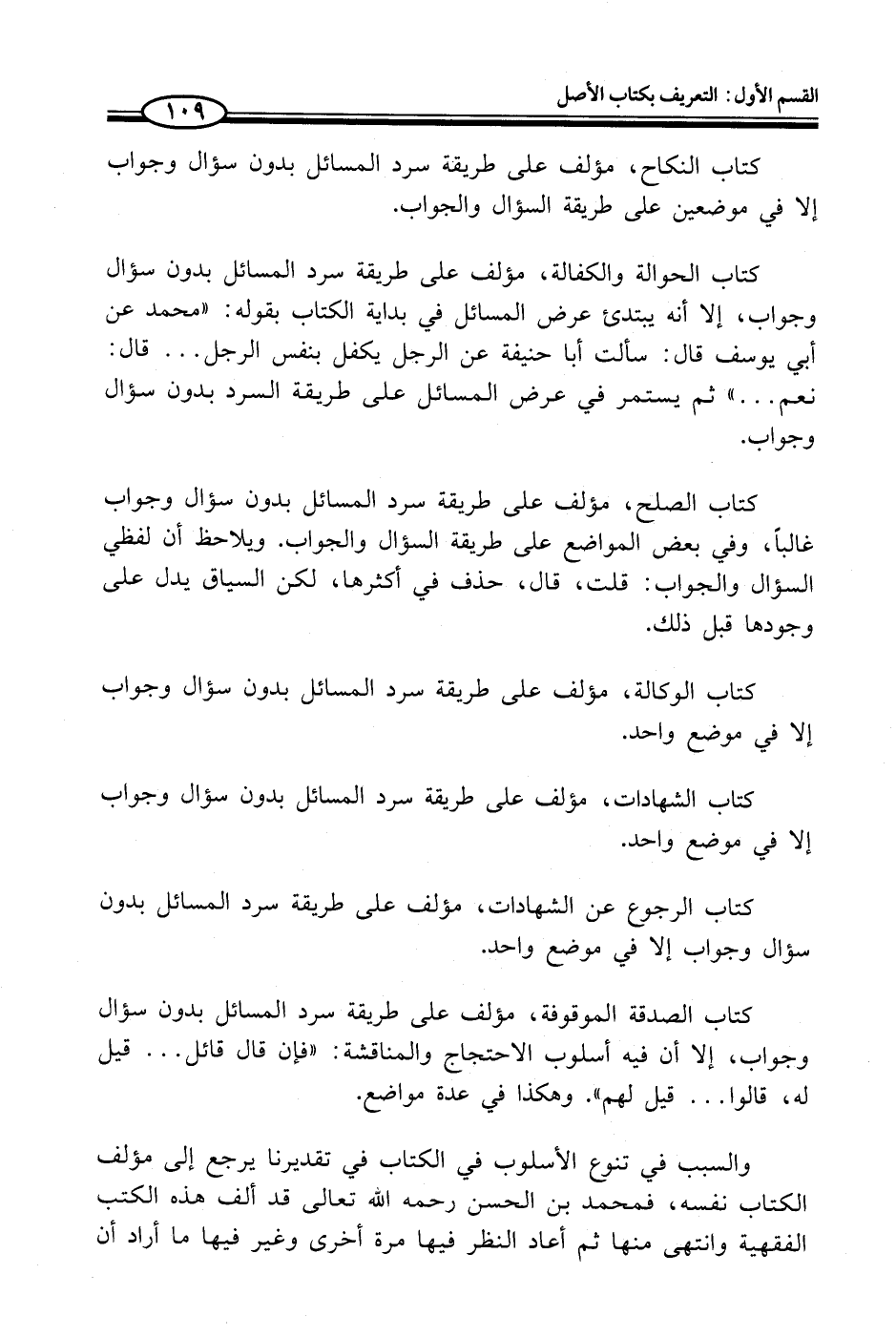 كتاب الوكالة، مؤلف على طريقة سرد المسائل بدون سؤال وجواب إلا في موضع واحد.
