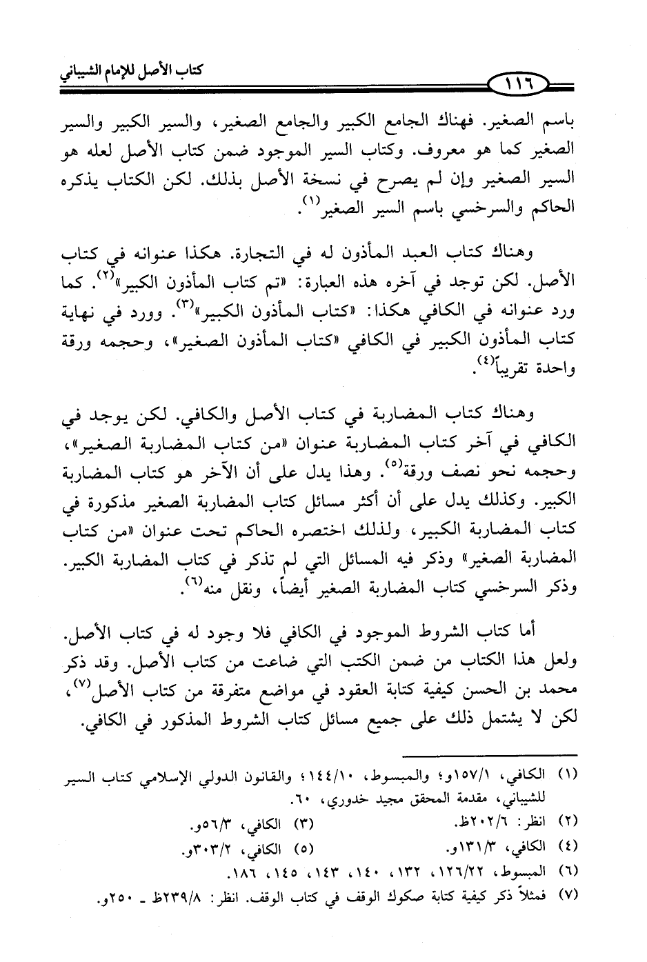 (¬1) الكافي، 1/ 157 و؛ والمبسوط،.10/ 144؛ والقانون الدولي الإسلامي كتاب السير للشيباني، مقدمة المحقق مجيد خدوري، 60.