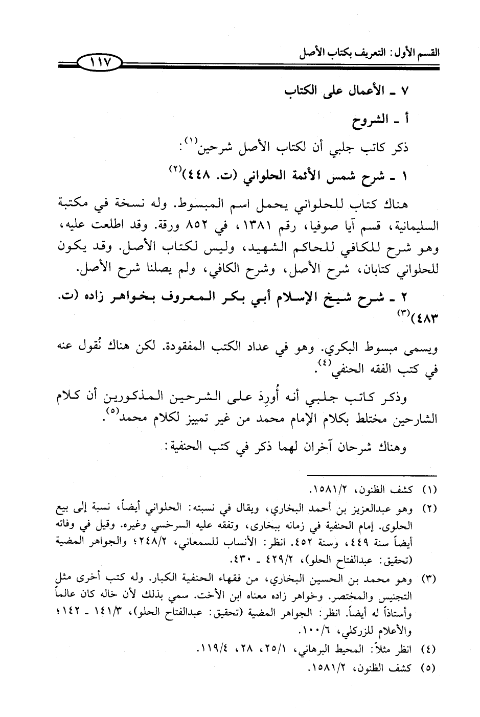 (¬3) وهو محمد بن الحسين البخاري، من فقهاء الحنفية الكبار. وله كتب أخرى مثل التجنيس والمختصر. وخواهر زاده معناه أبن الأخت. سمي بذلك لأن خاله كان عالماً وأستاذاً له أيضاً. انظر: الجواهر المضية (تحقيق: عبدالفتاح الحلو)، 3/ 141 - 142؛ والأعلام للزركلي، 6/ 100.